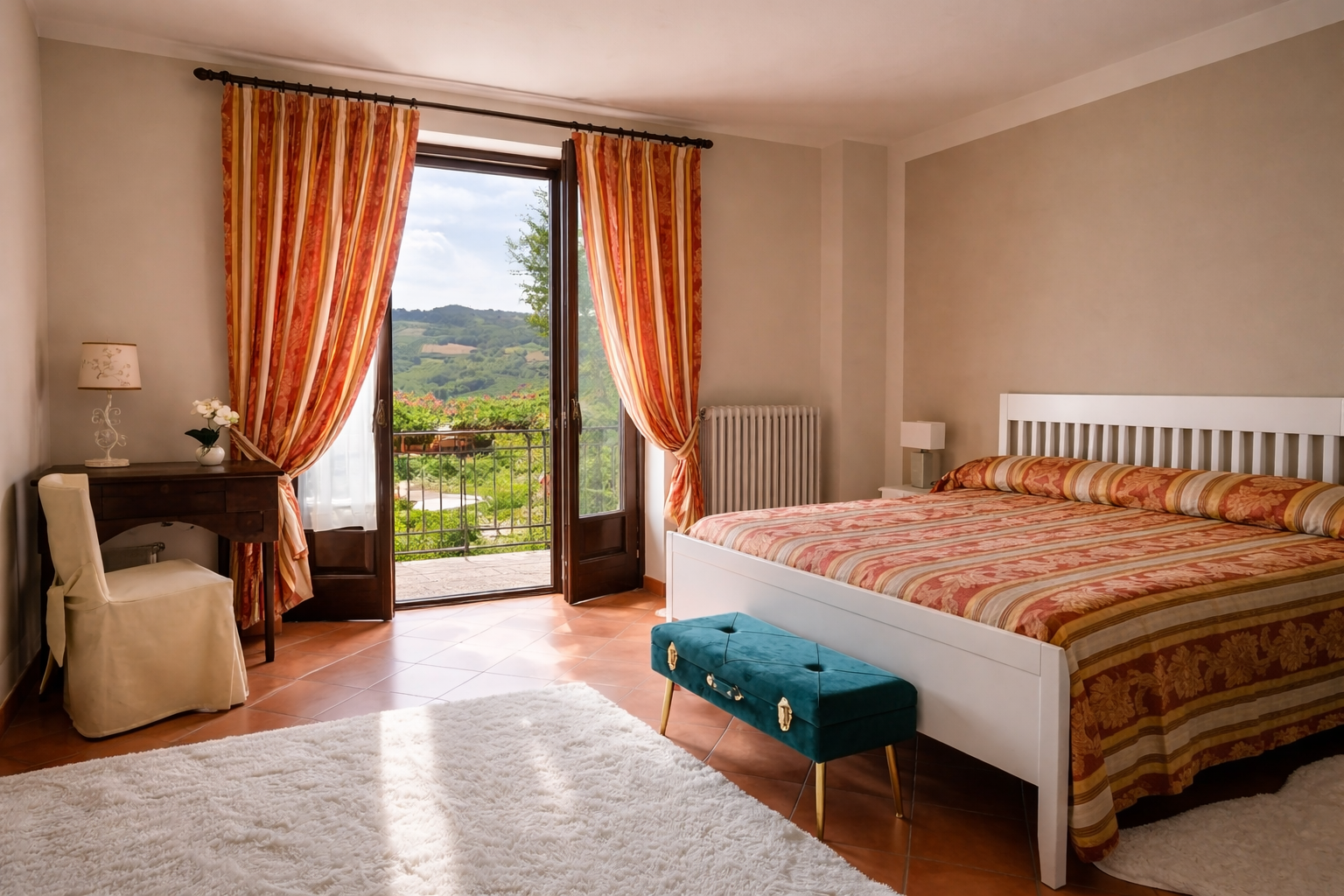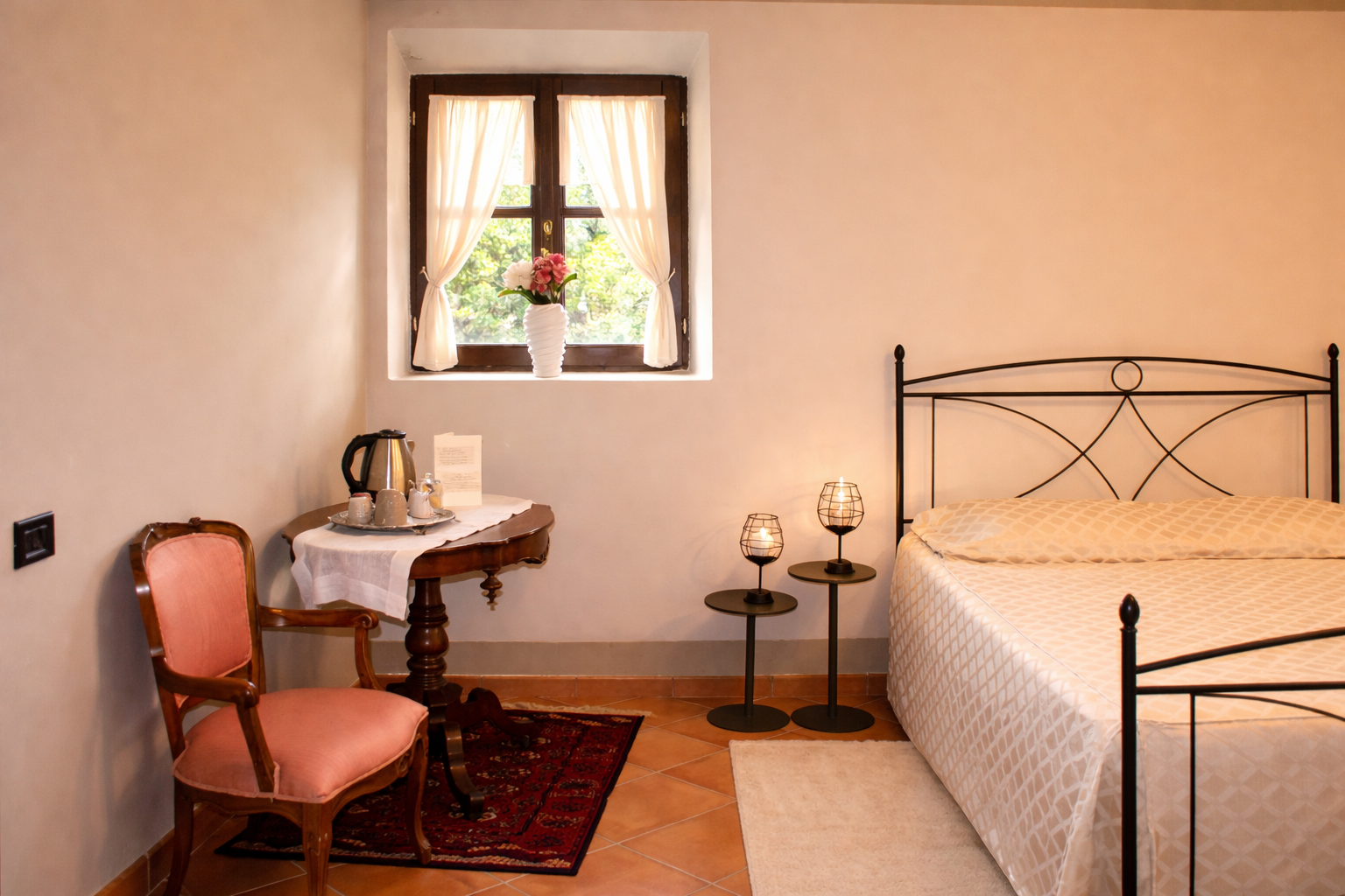 Benvenuti nella camera “Il buongiorno” Prenota ora Il Buongiorno è la camera patronale della casa, ampia e luminosa, affacciata sulla piscina e sui giardini dell’agriturismo. Arredata nello stile rustico ed elegante che caratterizza La Casa di Talin, dispone di una zona relax con divano, tavolino…